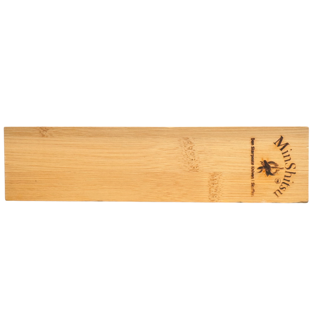 MinShitsu Lær Stykke med Bambus er et essensielt verktøy for siste steg i knivsliping. Etter å ha brukt slipesteiner, gir lærstykket en speilblank finish og fjerner mikroskopiske grader på kniveggen for den skarpeste skjæreopplevelsen.