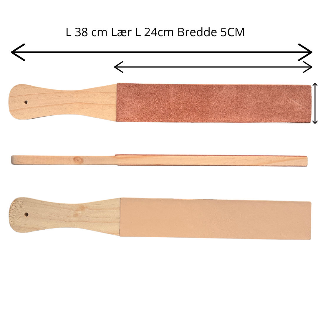 Laget av premium kuskinn, gir lærflaten en myk, men slitesterk polering som forlenger knivens levetid. Dette gir en sylskarp og holdbar egg uten unødvendig slitasje.