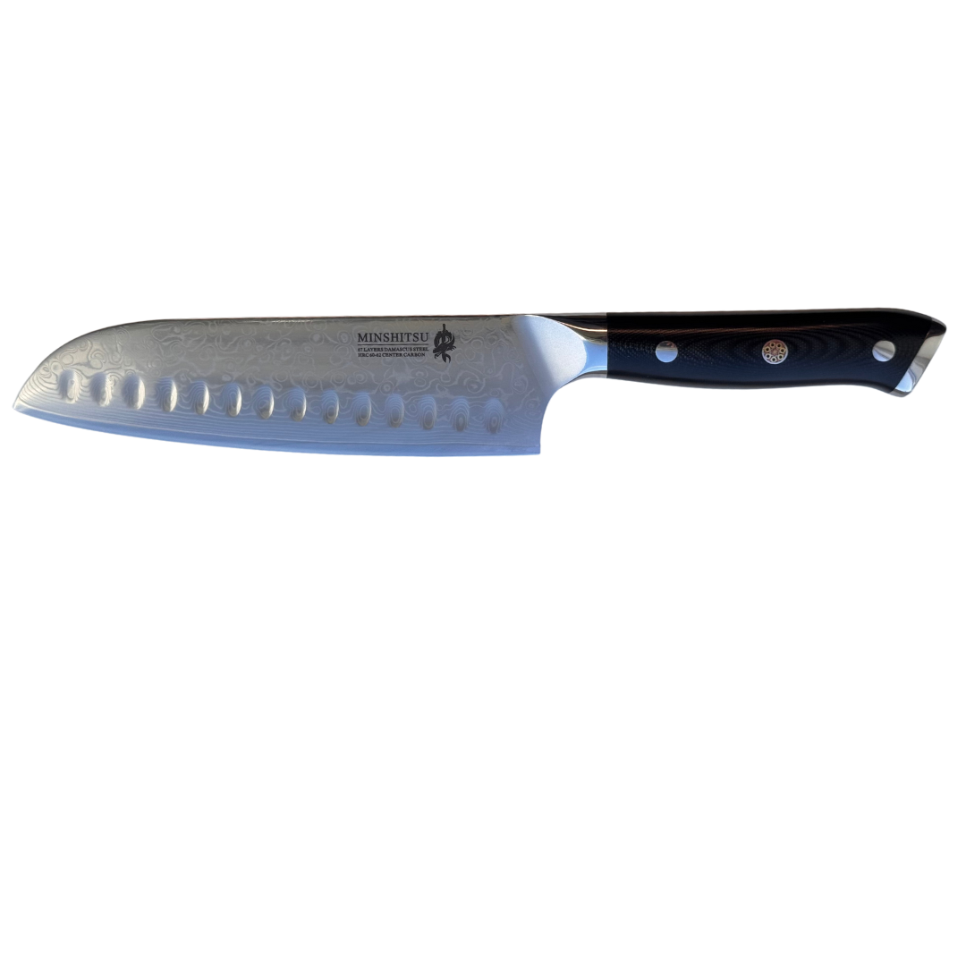 MinShitsu-knivene er designet for perfekt balanse og stabilitet, med en fulltang-konstruksjon som gir enestående kontroll. Håndtakene er laget av premium pakkatre, et materiale som gir et komfortabelt grep og en sklisikker overflate – selv under lange økter på kjøkkenet. Dette ergonomiske designet sikrer at du kan jobbe effektivt uten unødvendig belastning på håndleddene.