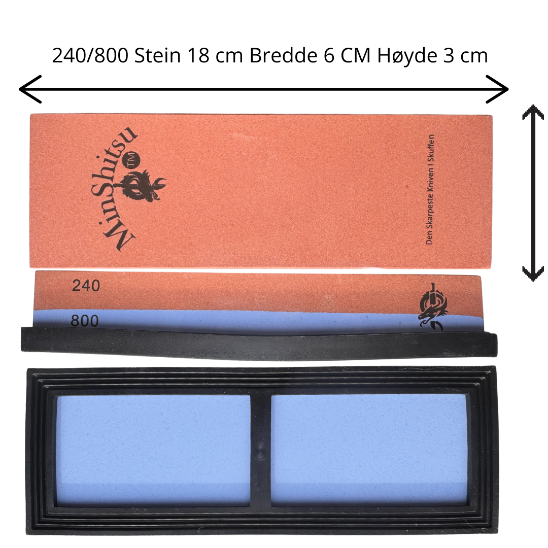 MinShitsu Premium Våt Slipe Stein 240/800 er et must-have for alle som tar knivskarphet på alvor. Med to slipegrader i én stein kan du enkelt slipe, vedlikeholde og gjenopprette knivens skarphet til et profesjonelt nivå.