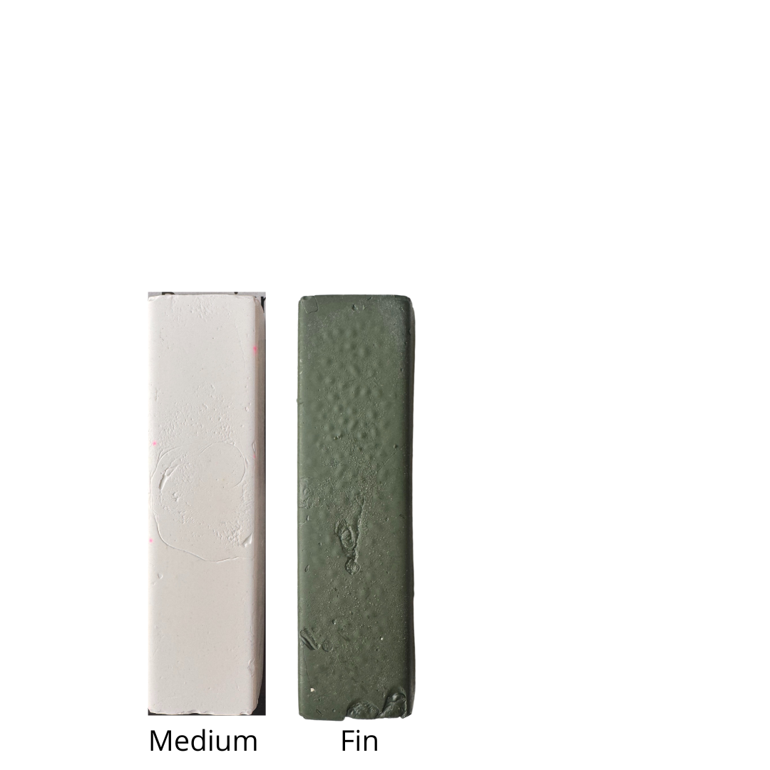 Den grønne slipemassen har en middels slipeeffekt, ideell for å fjerne fine riper og forberede kniveggen for siste polering. Perfekt for bruk med lærstropp eller poleringshjul.